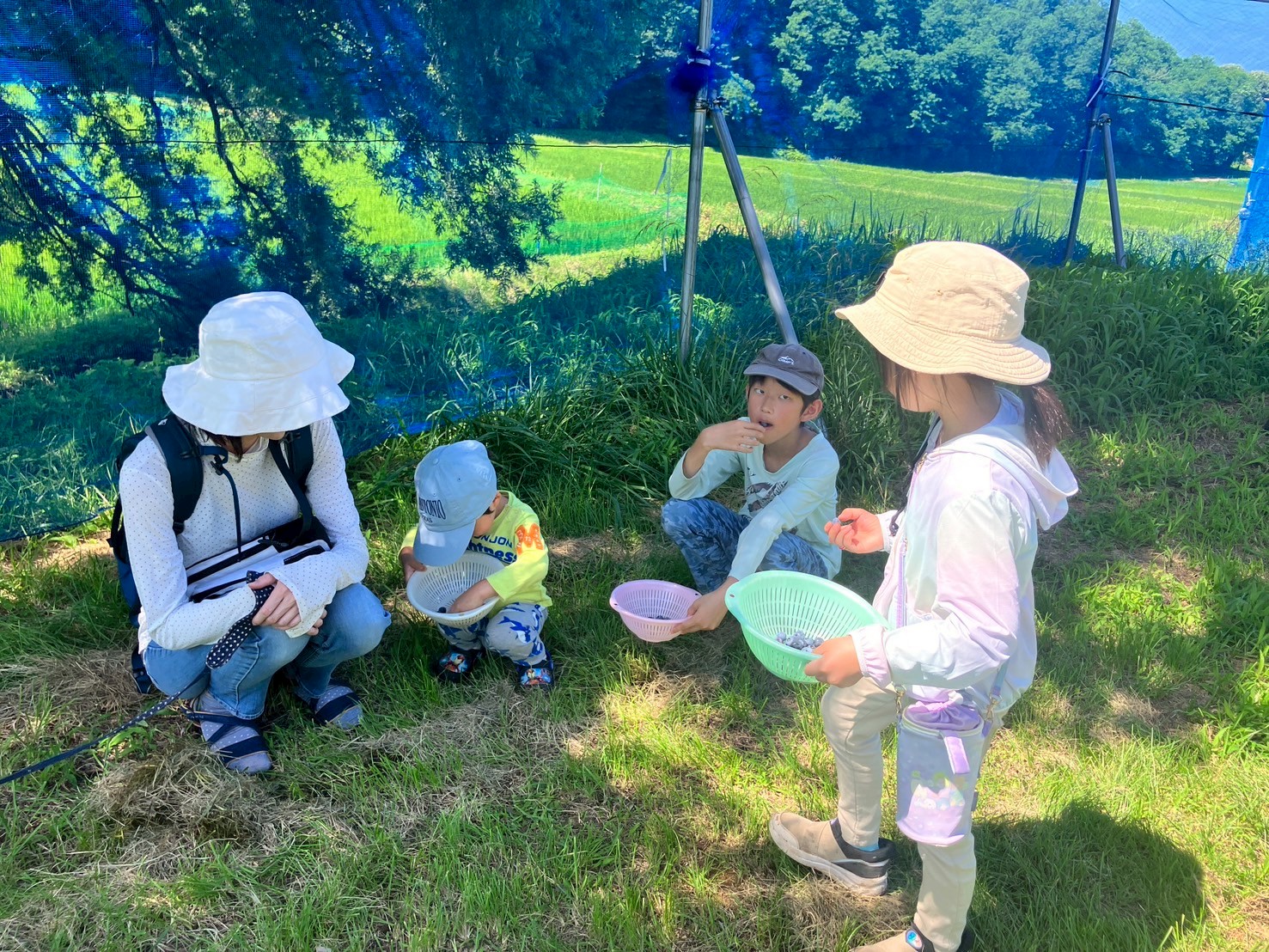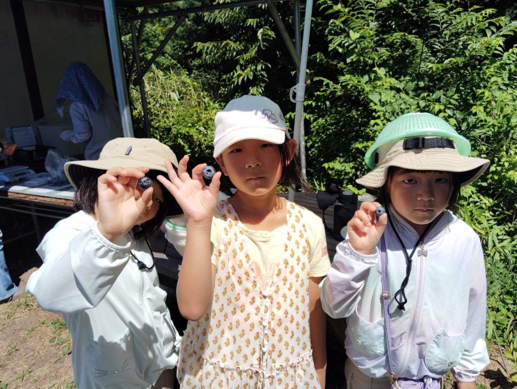 梅雨明けの晴れ空の下で、ブルーベリー狩り! 2025年7月19日 最終更新日時 : 2025年7月19日 denden_test 2025/7/19(土)「ちえのわ農園」で、7月恒例のブルーベリー狩りを行いました。今年は気温が高い日が続いた影響で早めに実が熟れて、蜂がいたためすこしドキドキしながらの摘み取り体験でしたが、いろいろな味を楽しんで、大きさ比べも実施しました。家族や友だち同士でおしゃべりしながら、楽しい時間を過ごすことができました♪ たくさんとるぞ~! 蜂がいる!しゃがんでやり過ごそう・・ 木陰でもぐもぐタイム 今年の大きさランキングのトップ3! あっという間の1時間でした☆