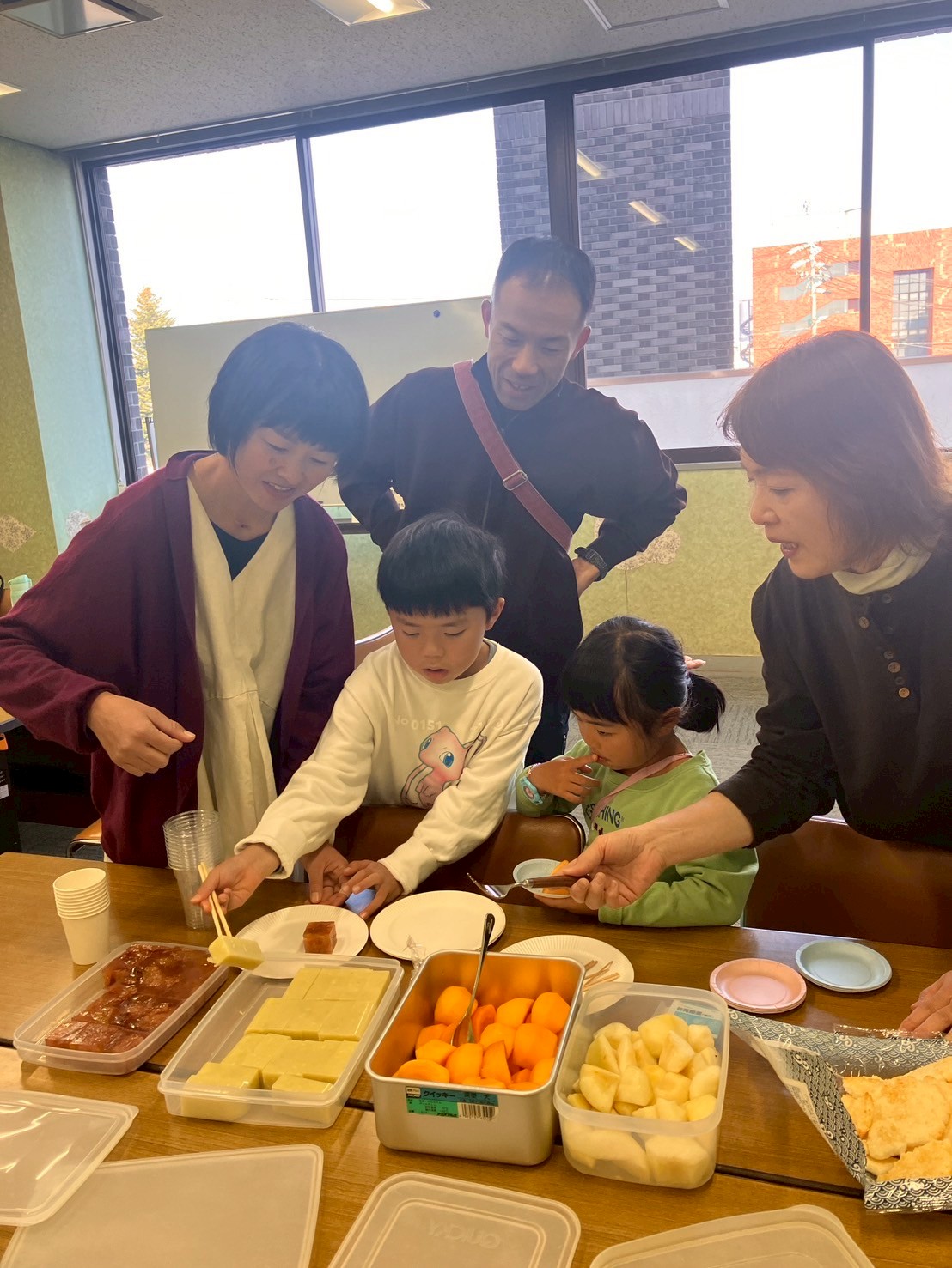 集まって、しゃべって、工作! 2025年11月12日 最終更新日時 : 2025年11月12日 denden_test 2025/11/8(土)松南地区公民館で、「どうぶつ忍者太鼓」の当番会を行いました。美味しい果物や手作りお菓子をいただきながら、自己紹介・作品紹介・当日の役割などを決めていき、後半は子どもたちも一緒に当番マーク作りを行いました。かわいい動物たちができましたよ♪12月の鑑賞会当日を楽しみに待ちたいと思います。 いちじくのコンポート、芋ようかん、柿、洋なし、しょっぱいおせんべいまで! 当番マークは動物の耳! よーく見ると立体的になっています 完成☆みんな似合ってる~!