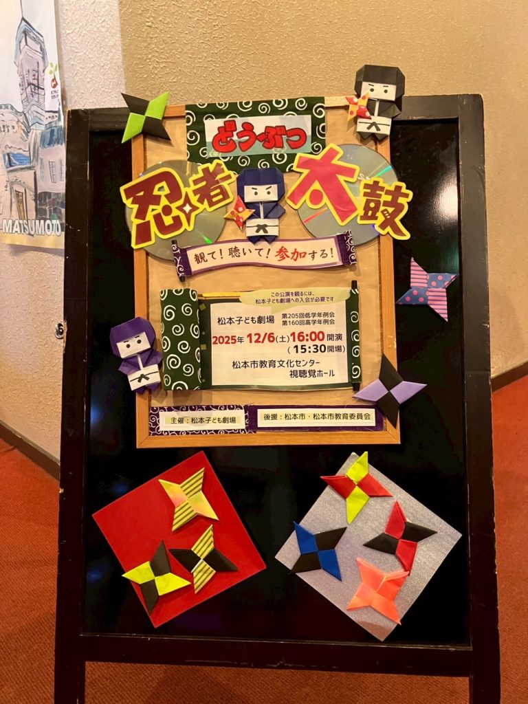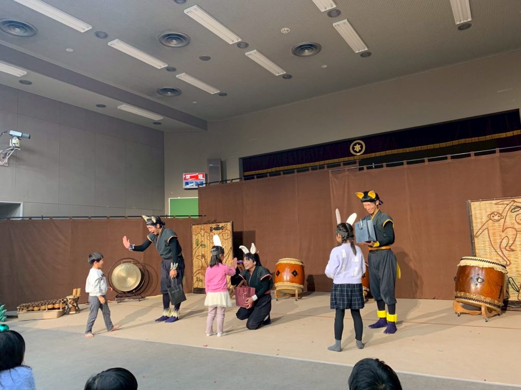 松本市教育文化センターにて、たまっ子座さんによる「どうぶつ忍者太鼓」鑑賞会がありました。